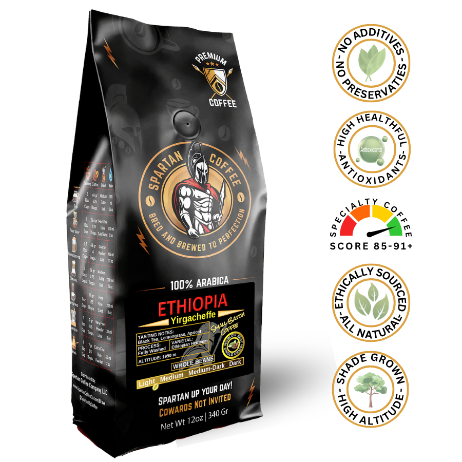 High quality specialty coffee grown in the mountains of Ethiopia (The inventor of coffee). It is sourced from 100% Arabica beans -the finest beans in the world, which have been carefully hand-selected, hand processed, and meticulously roasted to bring out their natural strength and flavor. Every sip is packed with taste and character. Unique flavor, characteristic aroma, medium acidity, medium body. Jasmine, berries, and dark chocolate notes. Try our complex flavor that beats all odds!